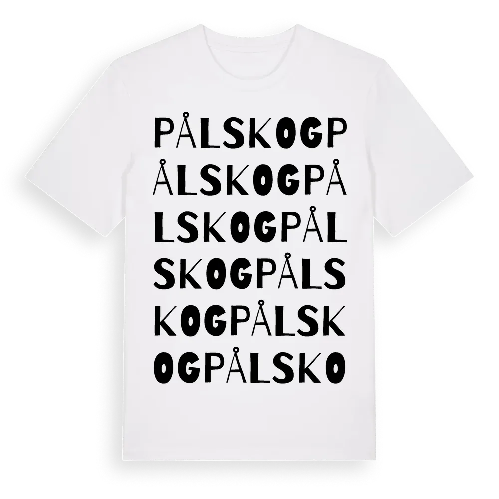 Pålskog ordlek t-shirt är inspirerad av byn Pålskog i Jönköpings län, Sverige. Tröjan är designad för dig som har en speciell koppling till platsen – oavsett om du bor här, har rötterna här eller bara älskar Pålskog.