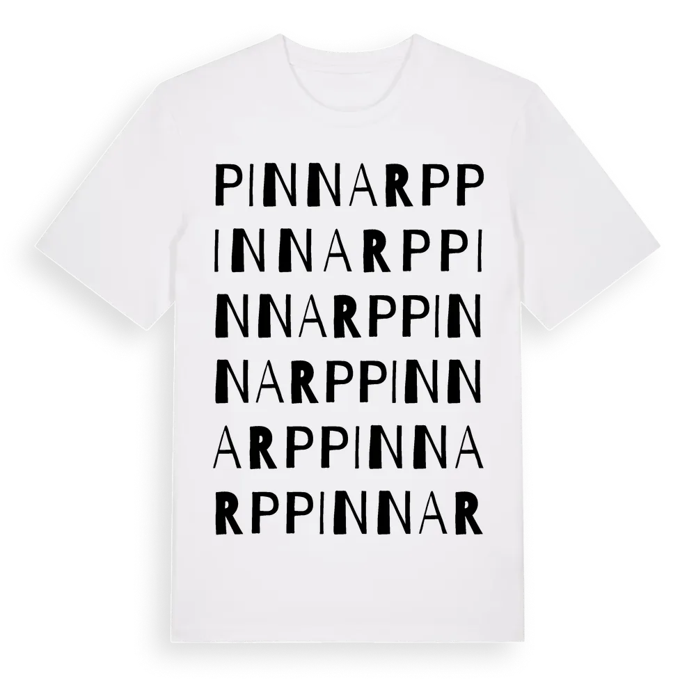 Pinnarp ordlek t-shirt är inspirerad av Pinnarp i Jönköpings län, Sverige. Tröjan är designad för dig som har en speciell koppling till platsen – oavsett om du bor här, har rötterna här eller bara älskar Pinnarp.