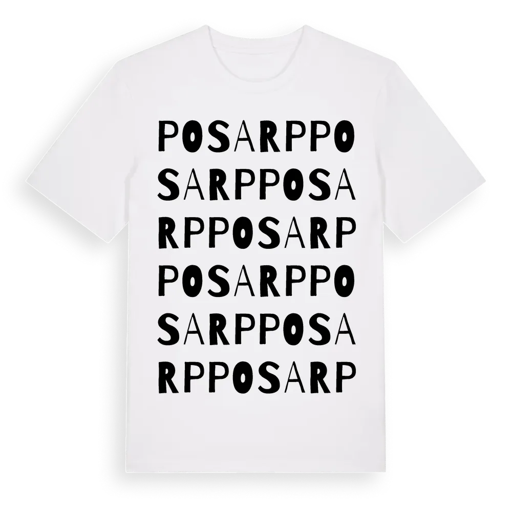Posarp ordlek t-shirt är inspirerad av Posarp i Jönköpings län, Sverige. Tröjan är designad för dig som har en speciell koppling till platsen – oavsett om du bor här, har rötterna här eller bara älskar Posarp.