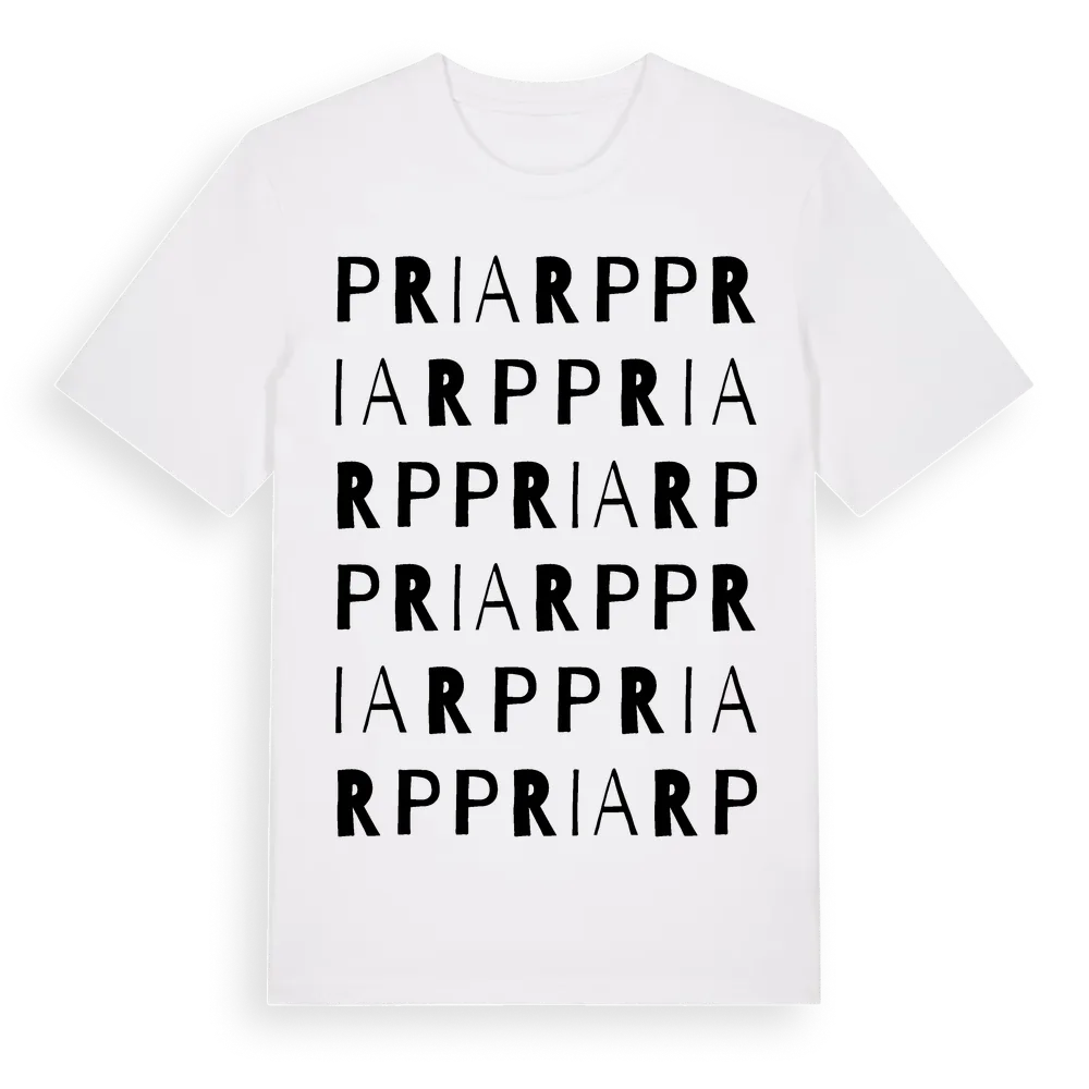 Priarp ordlek t-shirt är inspirerad av byn Priarp i Jönköpings län, Sverige. Tröjan är designad för dig som har en speciell koppling till platsen – oavsett om du bor här, har rötterna här eller bara älskar Priarp.