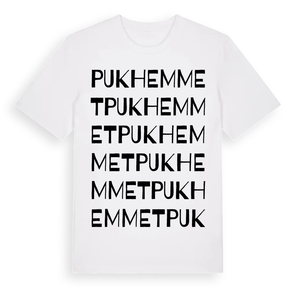 Pukhemmet ordlek t-shirt är inspirerad av Pukhemmet i Jönköpings län, Sverige. Tröjan är designad för dig som har en speciell koppling till platsen – oavsett om du bor här, har rötterna här eller bara älskar Pukhemmet.