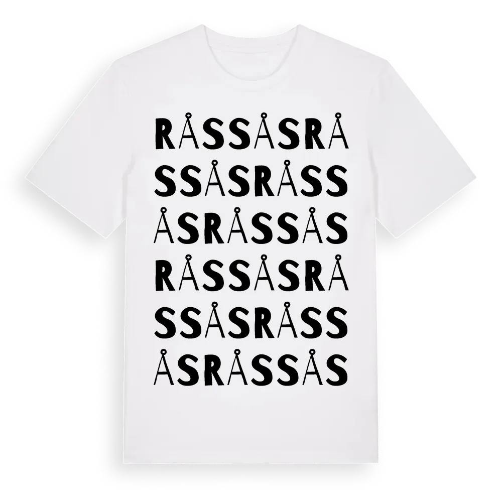 Råssås ordlek t-shirt är inspirerad av byn Råssås i Jönköpings län, Sverige. Tröjan är designad för dig som har en speciell koppling till platsen – oavsett om du bor här, har rötterna här eller bara älskar Råssås.