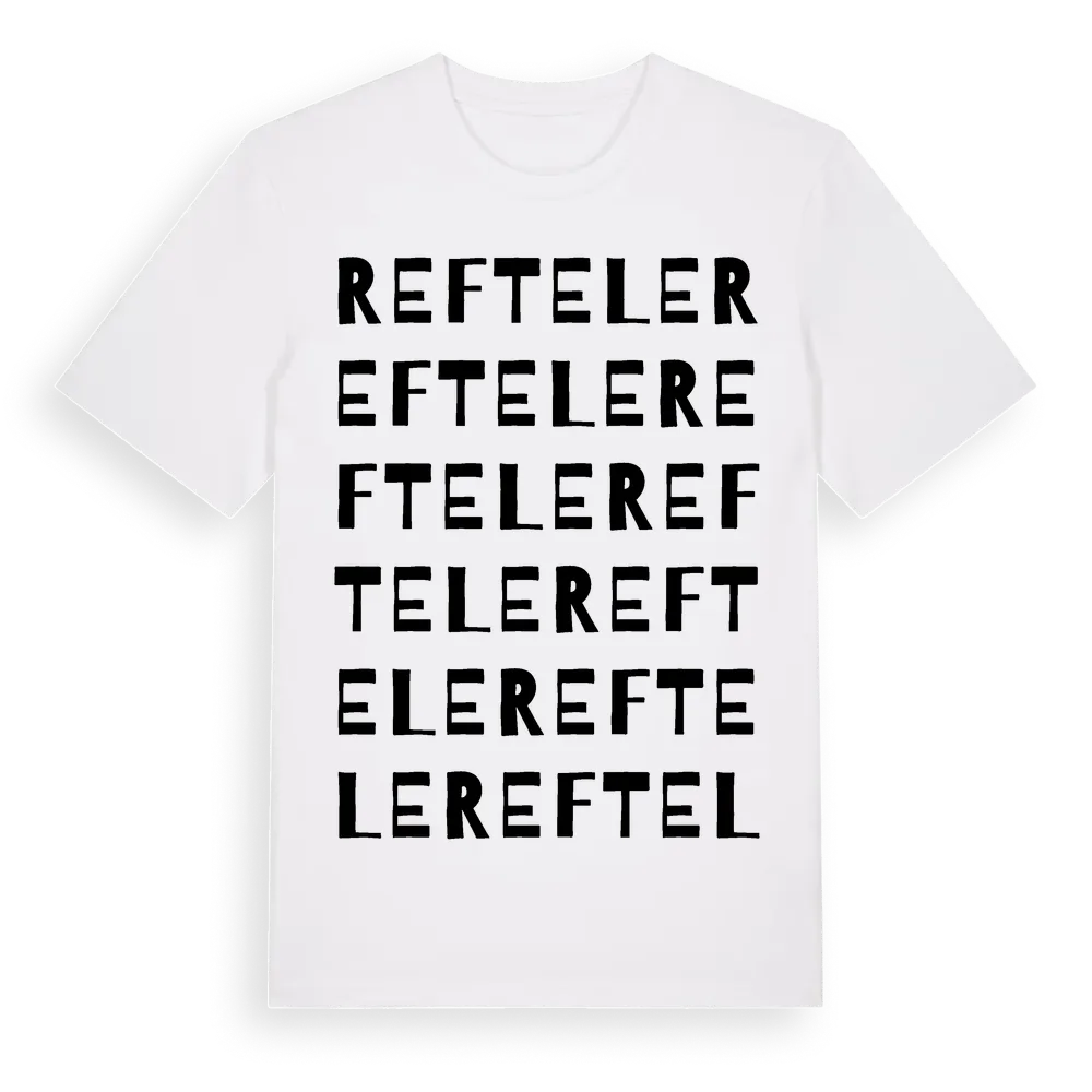 Reftele ordlek t-shirt är inspirerad av byn Reftele i Jönköpings län, Sverige. Tröjan är designad för dig som har en speciell koppling till platsen – oavsett om du bor här, har rötterna här eller bara älskar Reftele.