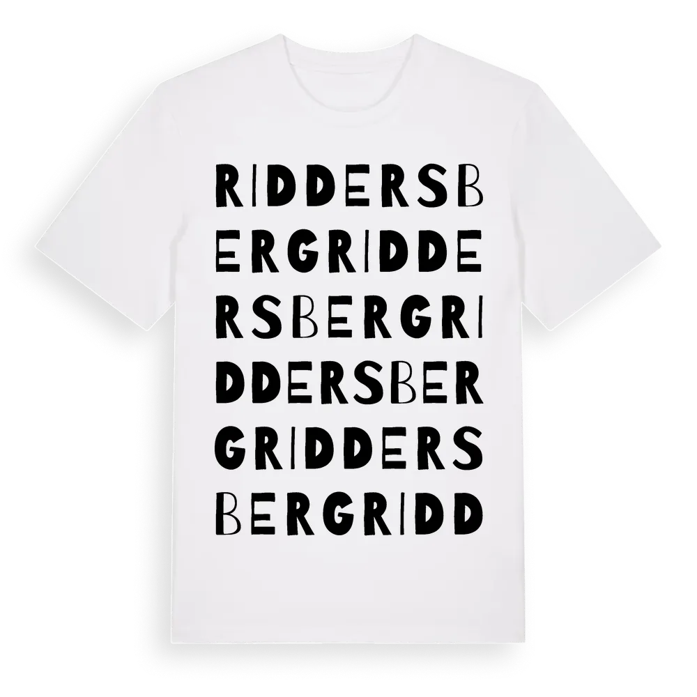 Riddersberg ordlek t-shirt är inspirerad av Riddersberg i Jönköpings län, Sverige. Tröjan är designad för dig som har en speciell koppling till platsen – oavsett om du bor här, har rötterna här eller bara älskar Riddersberg.