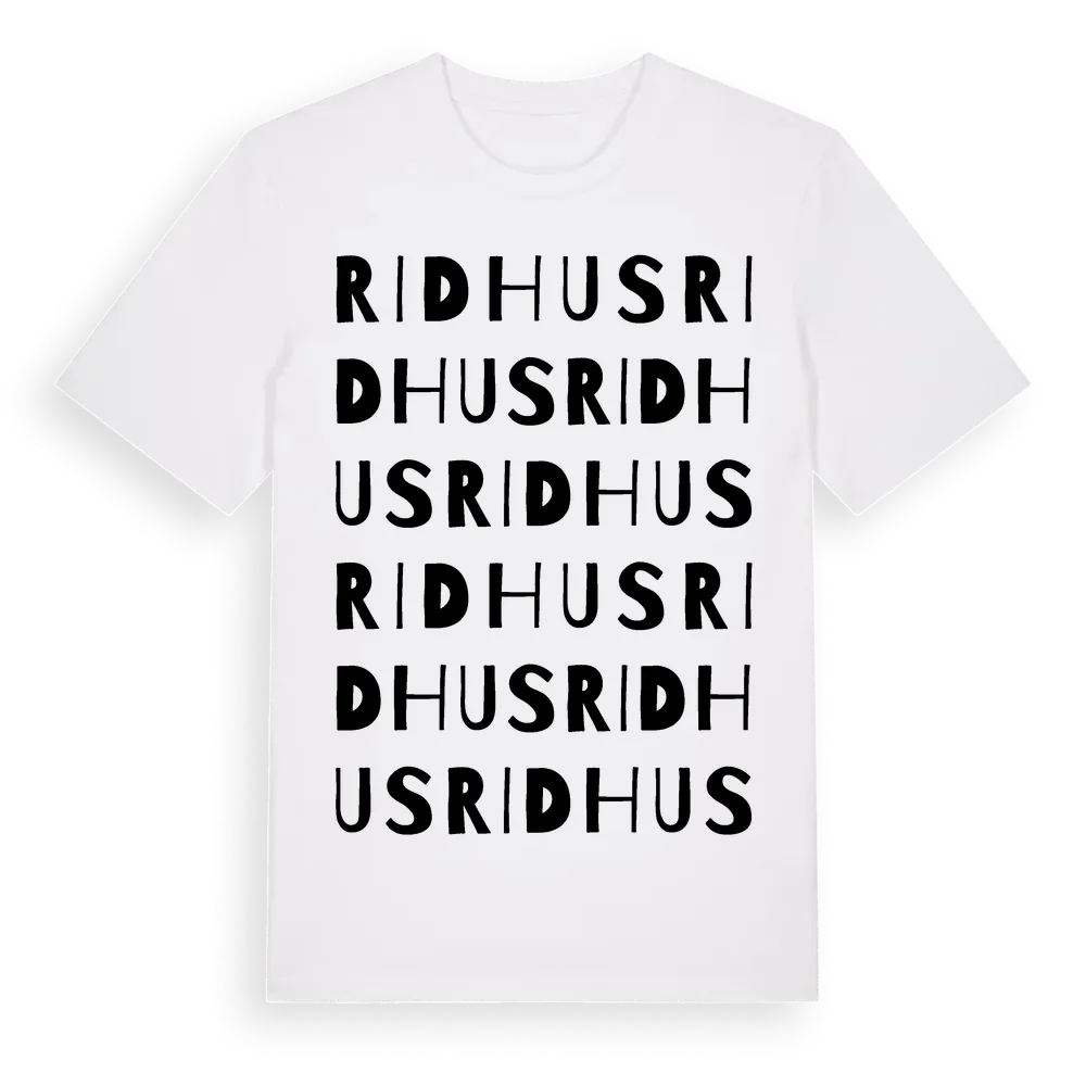 En ordlek byggd på Ridhuss namn. Subtilt och klurig – ett motiv som bara de som verkligen känner platsen fullt ut förstår. Premium bomull, unisex – från Ridhus i Jönköpings län.