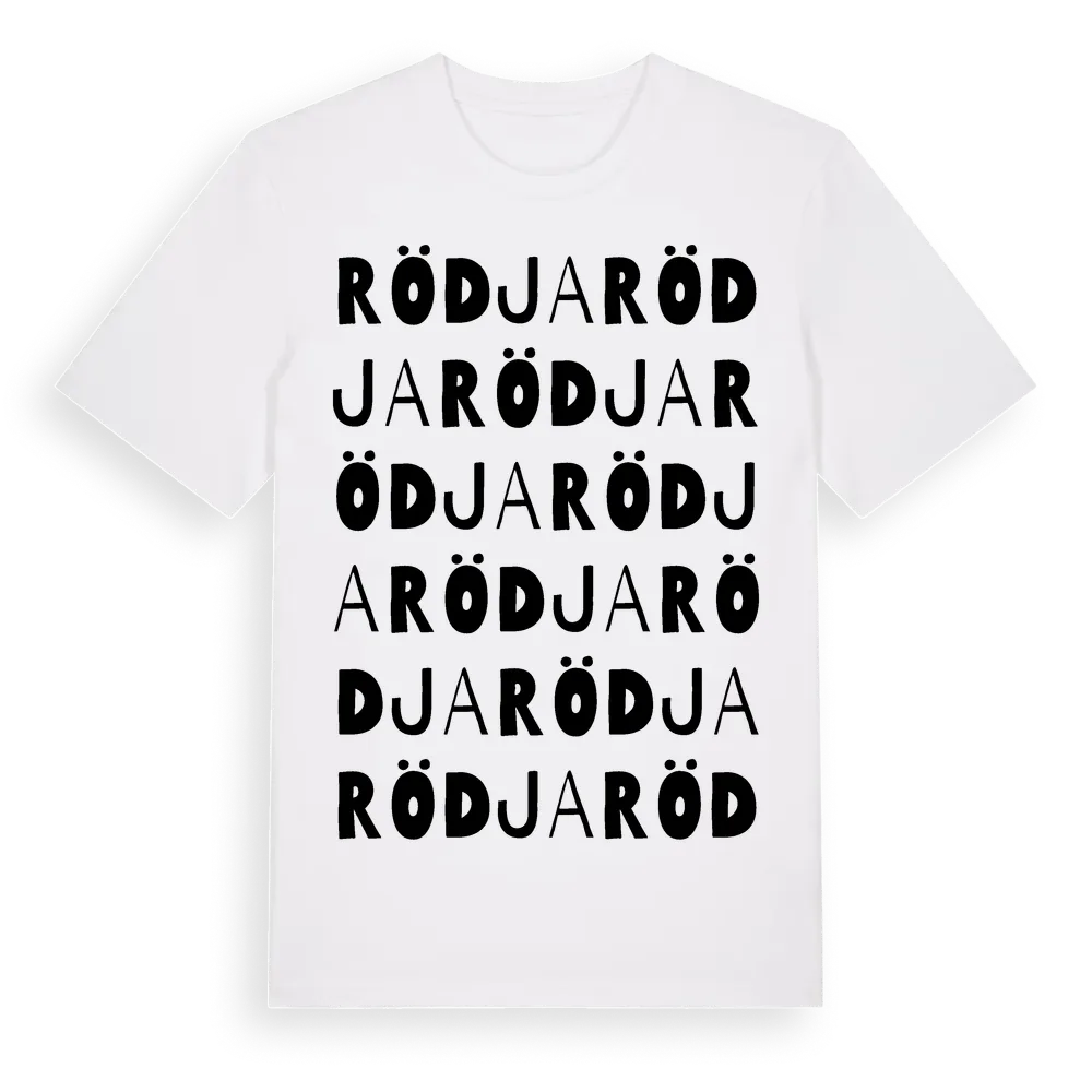 Rödja ordlek t-shirt är inspirerad av byn Rödja i Jönköpings län, Sverige. Tröjan är designad för dig som har en speciell koppling till platsen – oavsett om du bor här, har rötterna här eller bara älskar Rödja.