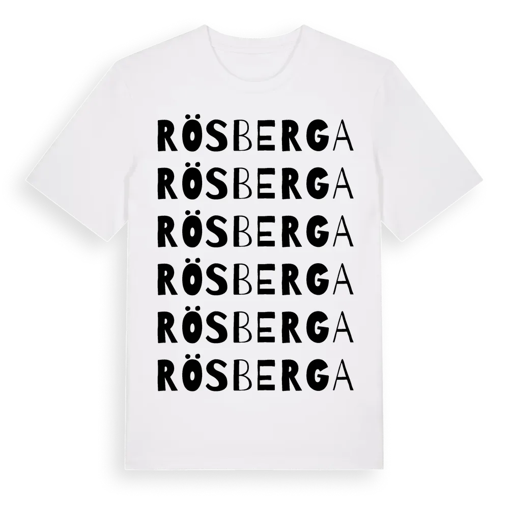 Rösberga ordlek t-shirt är inspirerad av byn Rösberga i Jönköpings län, Sverige. Tröjan är designad för dig som har en speciell koppling till platsen – oavsett om du bor här, har rötterna här eller bara älskar Rösberga.