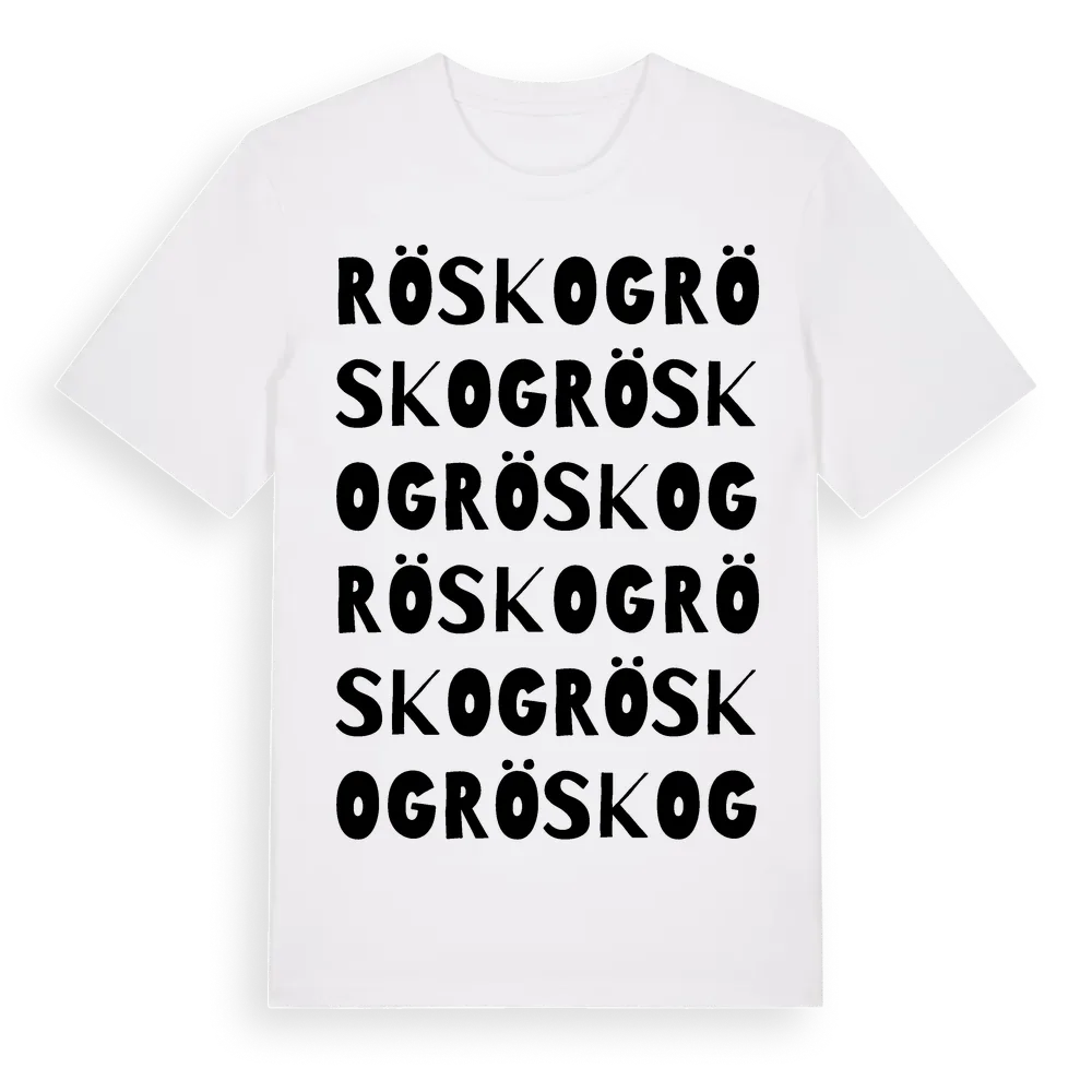 Röskog ordlek t-shirt är inspirerad av byn Röskog i Jönköpings län, Sverige. Tröjan är designad för dig som har en speciell koppling till platsen – oavsett om du bor här, har rötterna här eller bara älskar Röskog.