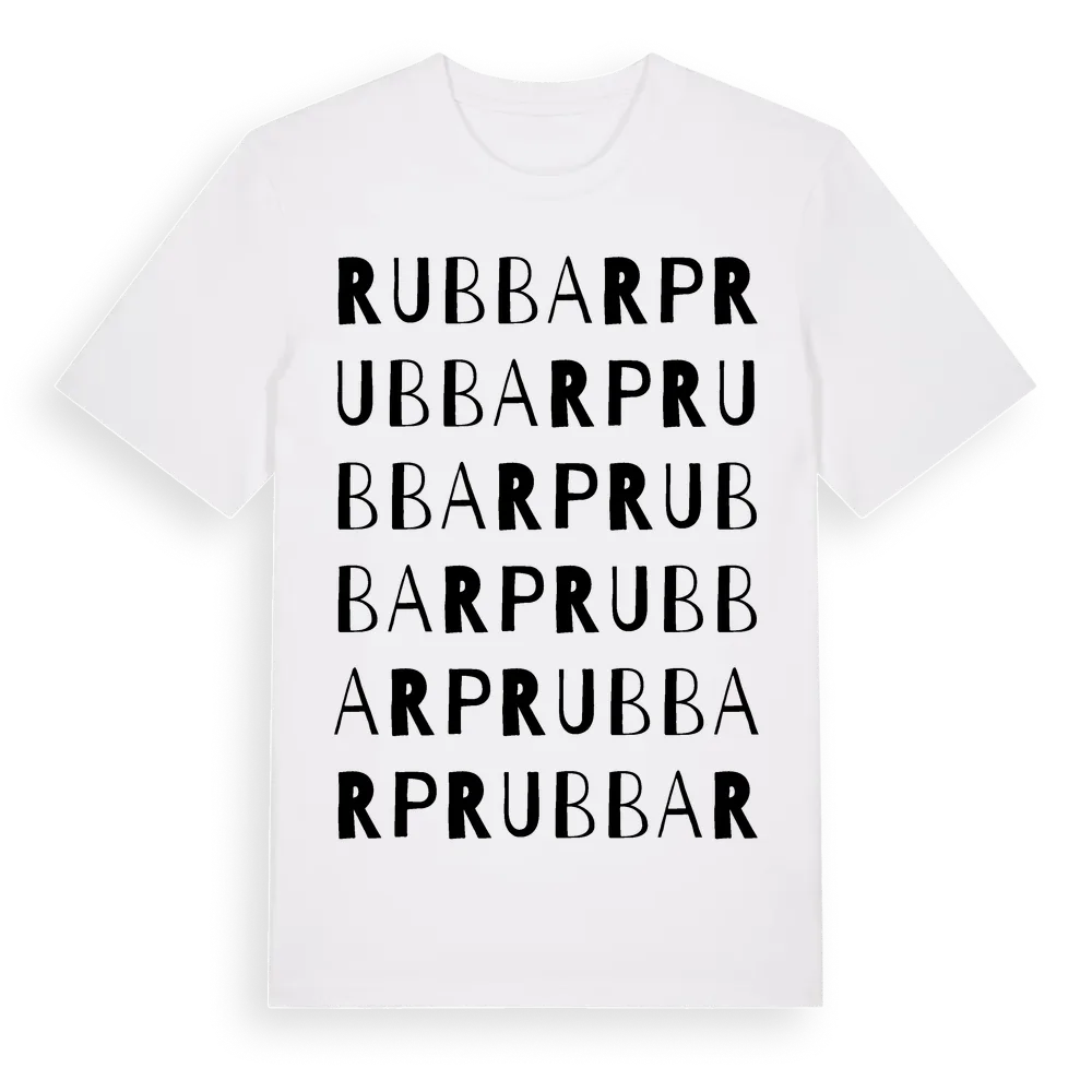 Rubbarp ordlek t-shirt är inspirerad av Rubbarp i Jönköpings län, Sverige. Tröjan är designad för dig som har en speciell koppling till platsen – oavsett om du bor här, har rötterna här eller bara älskar Rubbarp.