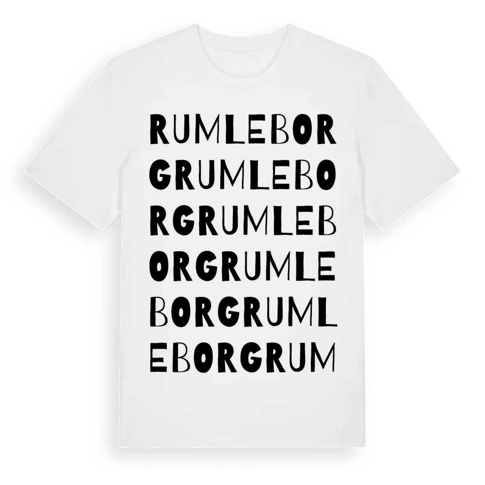 Rumleborg ordlek t-shirt är inspirerad av byn Rumleborg i Jönköpings län, Sverige. Tröjan är designad för dig som har en speciell koppling till platsen – oavsett om du bor här, har rötterna här eller bara älskar Rumleborg.