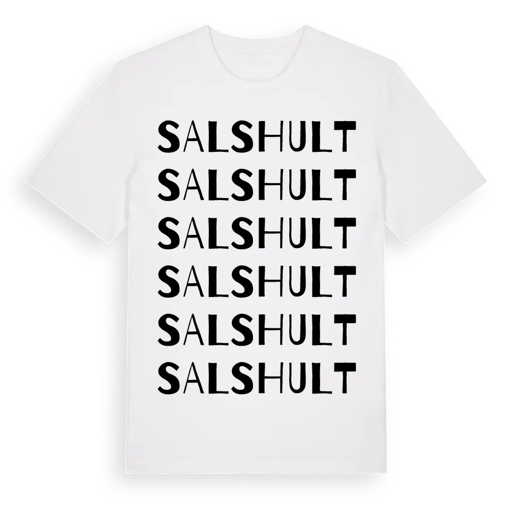 En ordlek byggd på Salshults namn. Subtilt och klurig – ett motiv som bara de som verkligen känner platsen fullt ut förstår. Premium bomull, unisex – från Salshult i Jönköpings län.