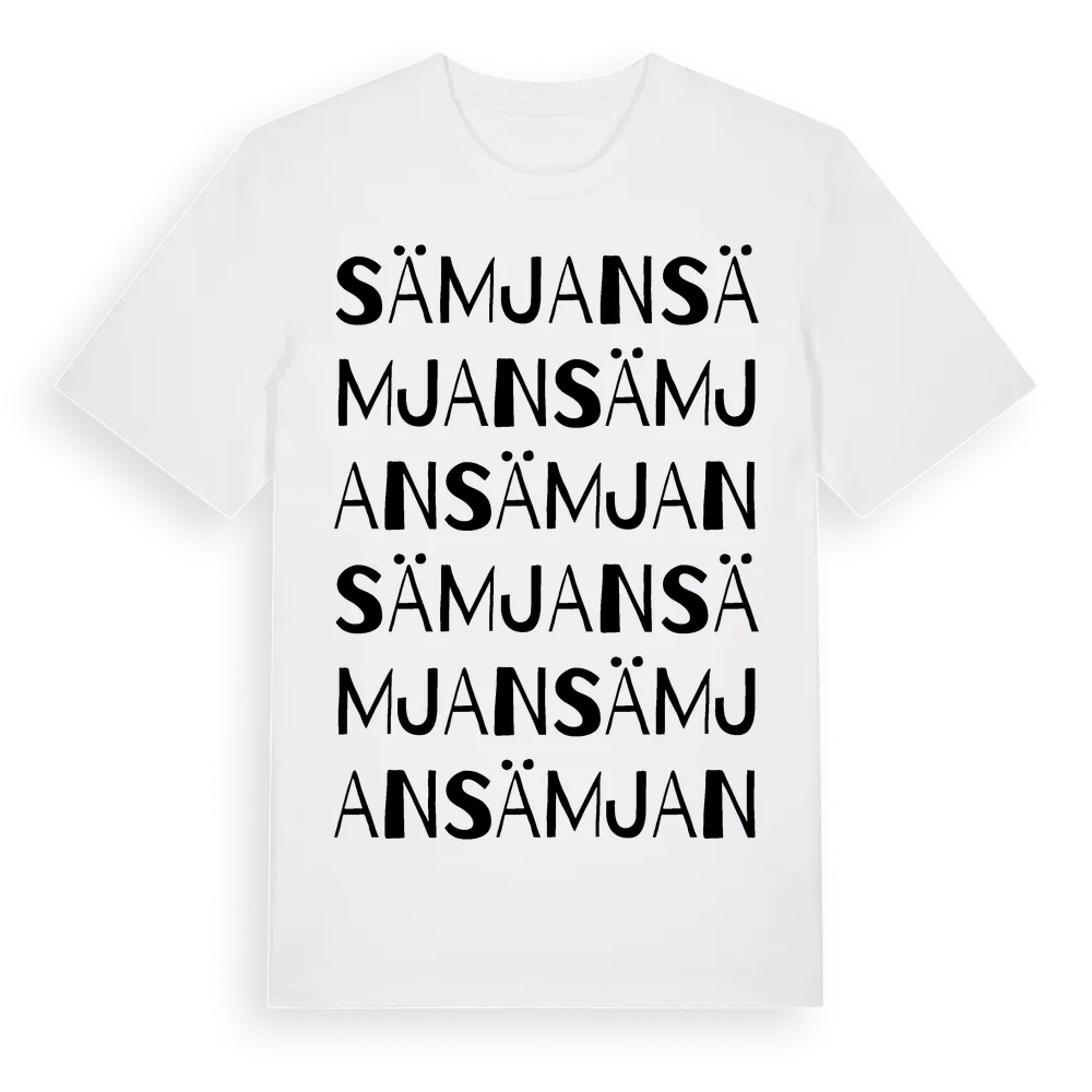 Sämjan ordlek t-shirt är inspirerad av Sämjan i Jönköpings län, Sverige. Tröjan är designad för dig som har en speciell koppling till platsen – oavsett om du bor här, har rötterna här eller bara älskar Sämjan.