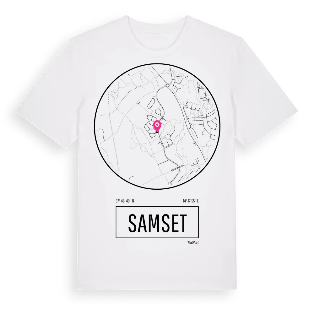Samset t-shirt är inspirerad av stadsdelen Samset i Jönköpings län, Sverige. Tröjan är designad för dig som har en speciell koppling till platsen – oavsett om du bor här, har rötterna här eller bara älskar Samset.
