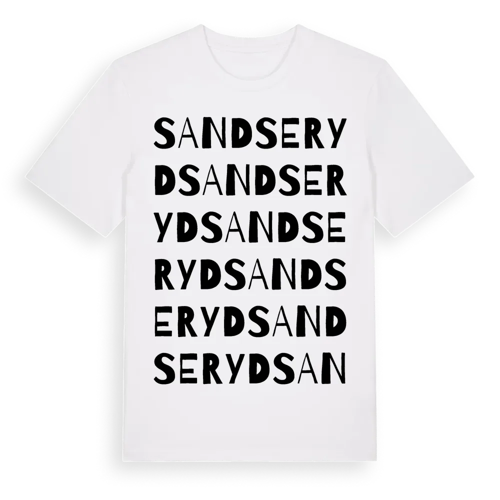 Sandseryd ordlek t-shirt är inspirerad av byn Sandseryd i Jönköpings län, Sverige. Tröjan är designad för dig som har en speciell koppling till platsen – oavsett om du bor här, har rötterna här eller bara älskar Sandseryd.