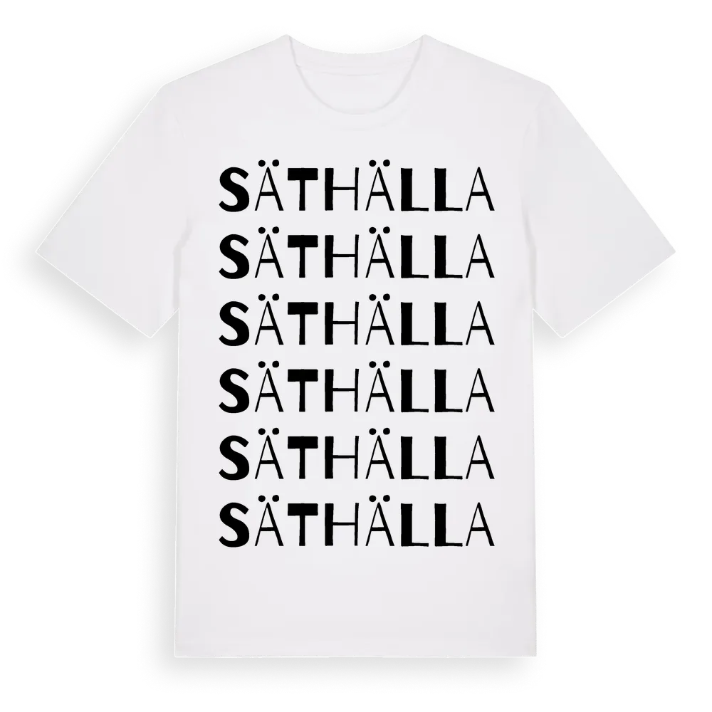 Säthälla ordlek t-shirt är inspirerad av Säthälla i Jönköpings län, Sverige. Tröjan är designad för dig som har en speciell koppling till platsen – oavsett om du bor här, har rötterna här eller bara älskar Säthälla.