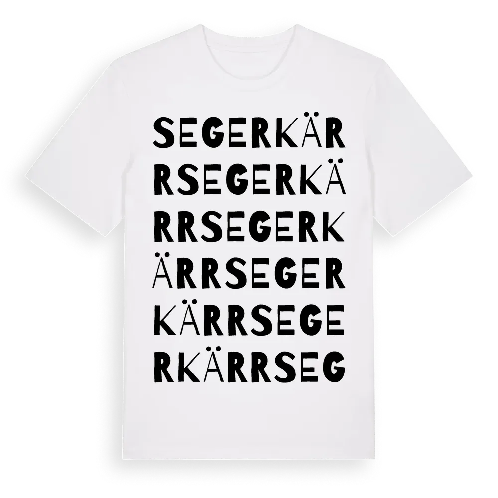 Segerkärr ordlek t-shirt är inspirerad av Segerkärr i Jönköpings län, Sverige. Tröjan är designad för dig som har en speciell koppling till platsen – oavsett om du bor här, har rötterna här eller bara älskar Segerkärr.