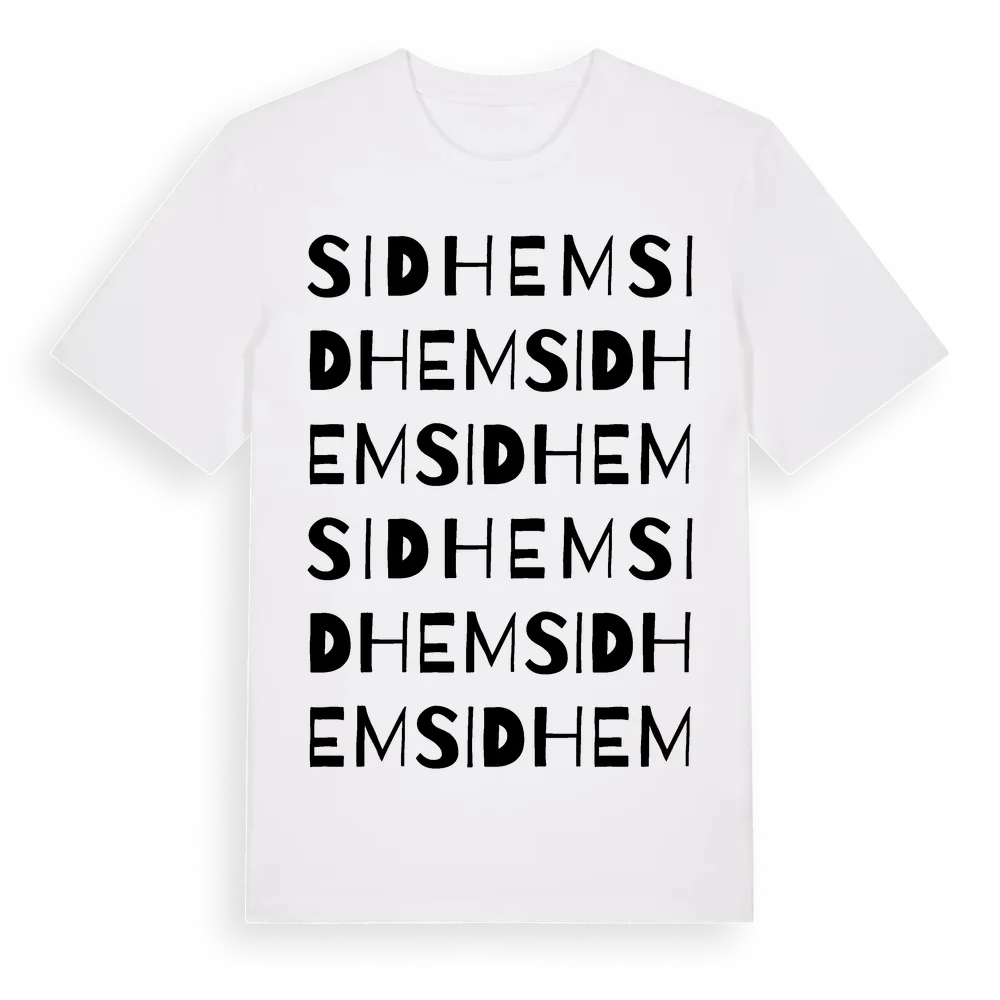 Sidhem ordlek t-shirt är inspirerad av Sidhem i Jönköpings län, Sverige. Tröjan är designad för dig som har en speciell koppling till platsen – oavsett om du bor här, har rötterna här eller bara älskar Sidhem.