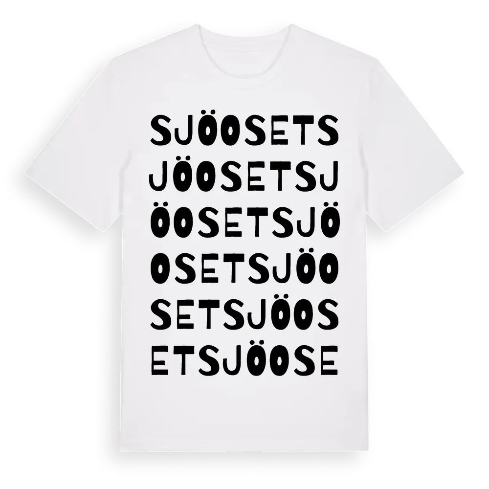 Sjöoset ordlek t-shirt är inspirerad av Sjöoset i Jönköpings län, Sverige. Tröjan är designad för dig som har en speciell koppling till platsen – oavsett om du bor här, har rötterna här eller bara älskar Sjöoset.