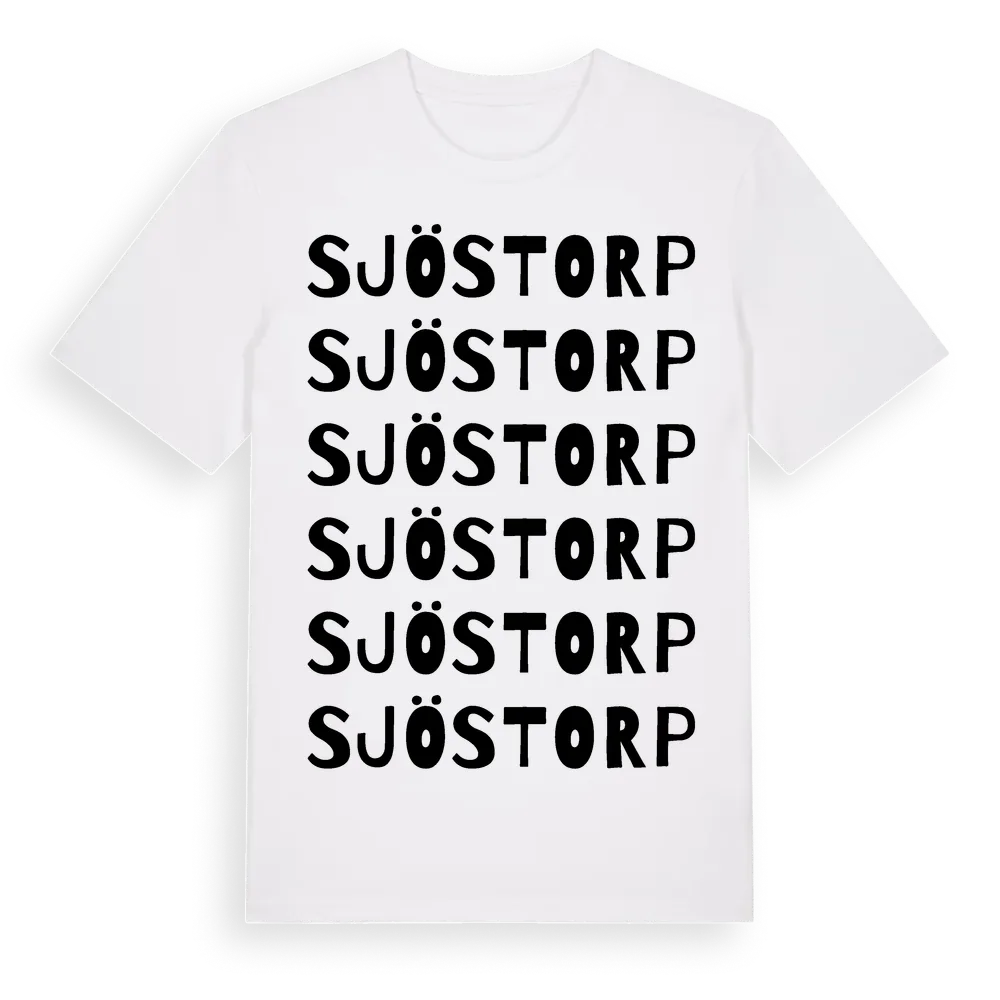 Sjöstorp ordlek t-shirt är inspirerad av Sjöstorp i Jönköpings län, Sverige. Tröjan är designad för dig som har en speciell koppling till platsen – oavsett om du bor här, har rötterna här eller bara älskar Sjöstorp.