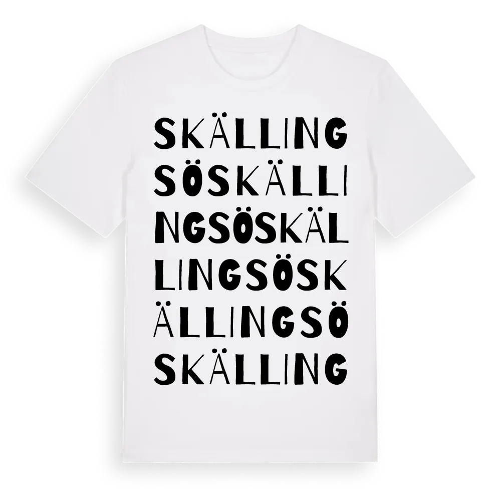 Skällingsö ordlek t-shirt är inspirerad av byn Skällingsö i Jönköpings län, Sverige. Tröjan är designad för dig som har en speciell koppling till platsen – oavsett om du bor här, har rötterna här eller bara älskar Skällingsö.