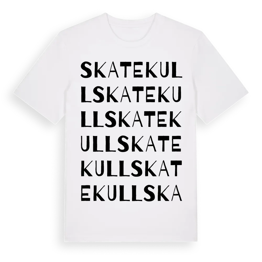 Skatekull ordlek t-shirt är inspirerad av Skatekull i Jönköpings län, Sverige. Tröjan är designad för dig som har en speciell koppling till platsen – oavsett om du bor här, har rötterna här eller bara älskar Skatekull.