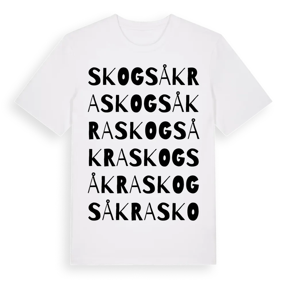 Skogsåkra ordlek t-shirt är inspirerad av byn Skogsåkra i Jönköpings län, Sverige. Tröjan är designad för dig som har en speciell koppling till platsen – oavsett om du bor här, har rötterna här eller bara älskar Skogsåkra.