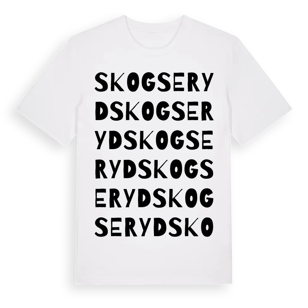 Skogseryd ordlek t-shirt är inspirerad av Skogseryd i Jönköpings län, Sverige. Tröjan är designad för dig som har en speciell koppling till platsen – oavsett om du bor här, har rötterna här eller bara älskar Skogseryd.