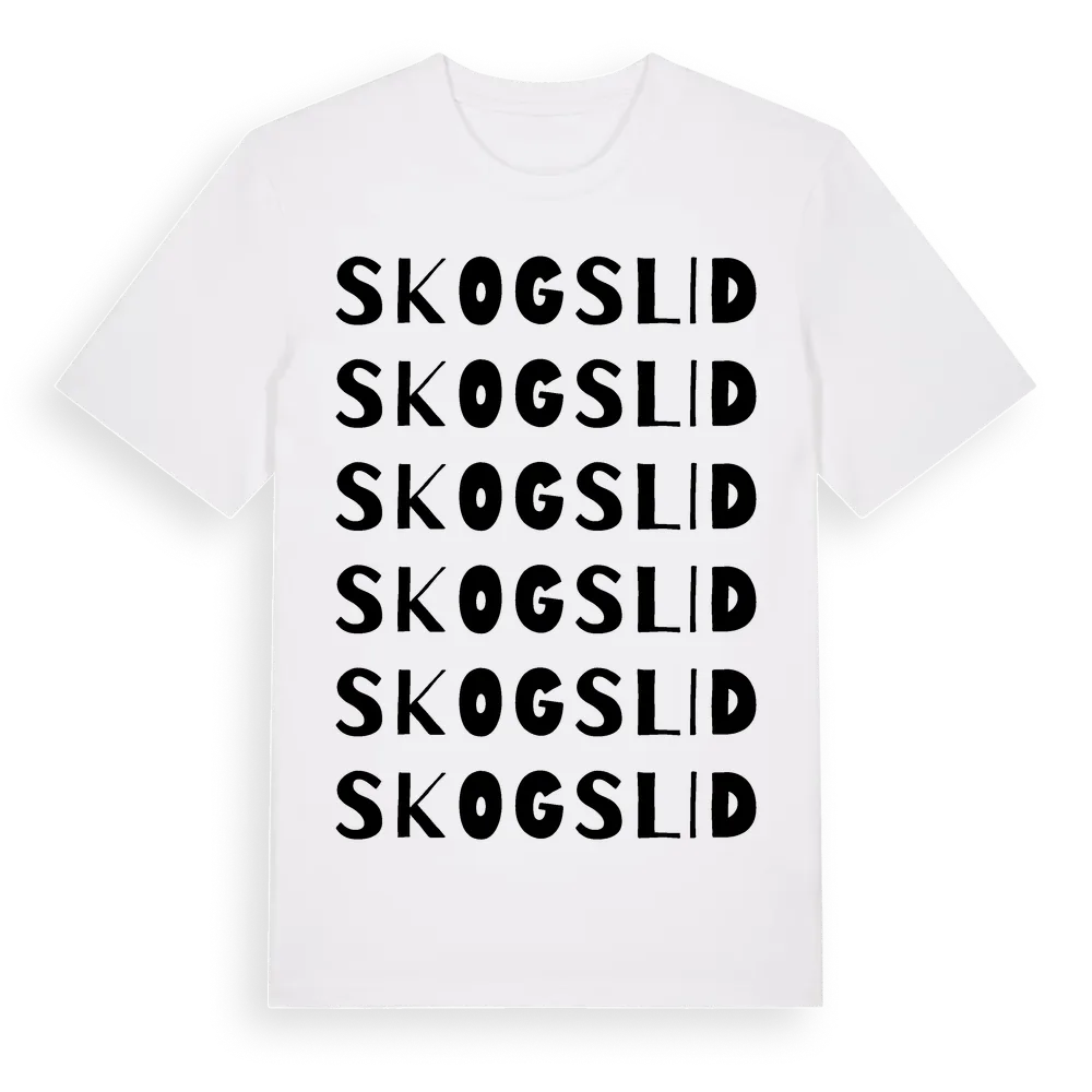 Skogslid ordlek t-shirt är inspirerad av byn Skogslid i Jönköpings län, Sverige. Tröjan är designad för dig som har en speciell koppling till platsen – oavsett om du bor här, har rötterna här eller bara älskar Skogslid.