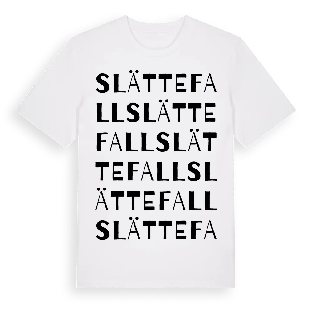 Slättefall ordlek t-shirt är inspirerad av Slättefall i Jönköpings län, Sverige. Tröjan är designad för dig som har en speciell koppling till platsen – oavsett om du bor här, har rötterna här eller bara älskar Slättefall.