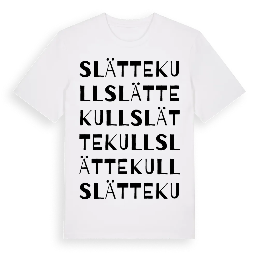 En ordlek byggd på Slättekulls namn. Subtilt och klurig – ett motiv som bara de som verkligen känner platsen fullt ut förstår. Premium bomull, unisex – från Slättekull i Jönköpings län.