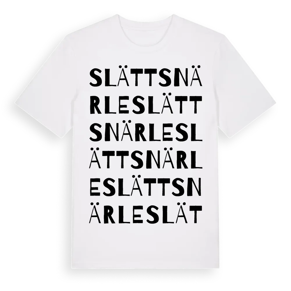 Slättsnärle ordlek t-shirt är inspirerad av Slättsnärle i Jönköpings län, Sverige. Tröjan är designad för dig som har en speciell koppling till platsen – oavsett om du bor här, har rötterna här eller bara älskar Slättsnärle.