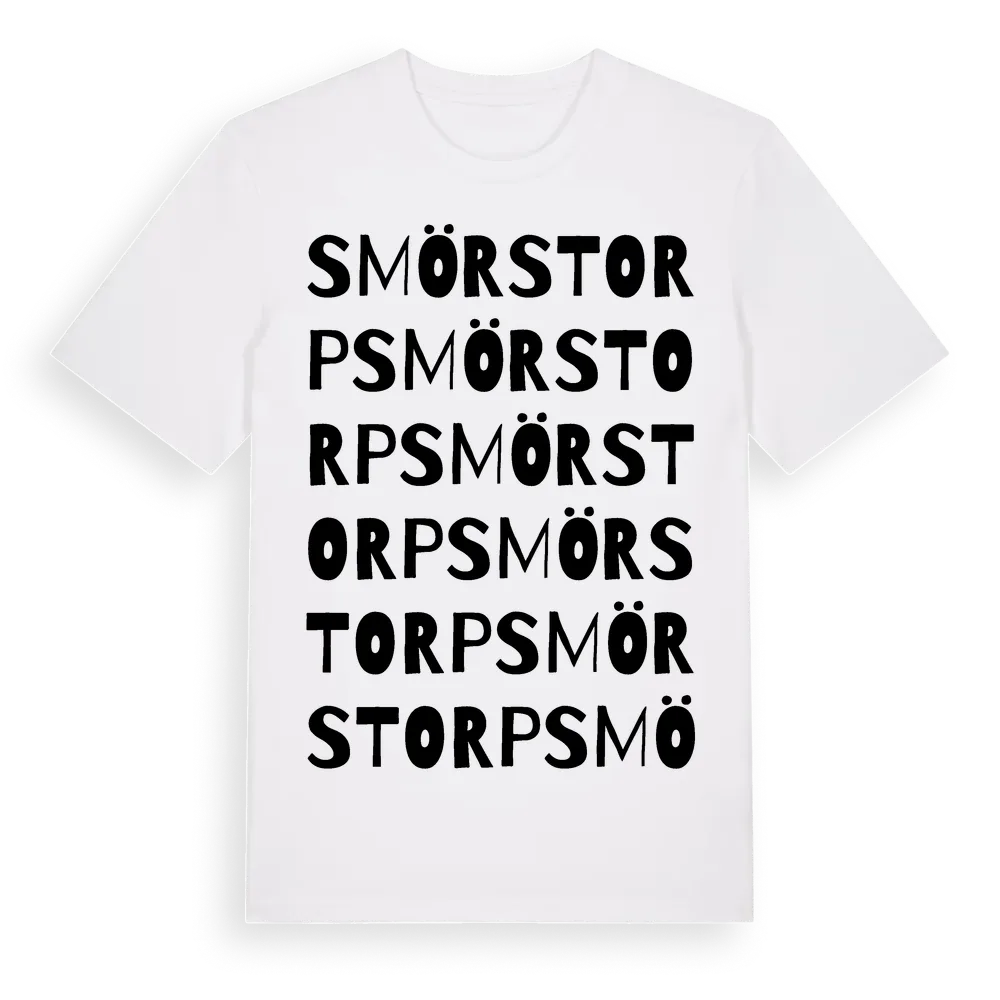 Smörstorp ordlek t-shirt är inspirerad av Smörstorp i Jönköpings län, Sverige. Tröjan är designad för dig som har en speciell koppling till platsen – oavsett om du bor här, har rötterna här eller bara älskar Smörstorp.