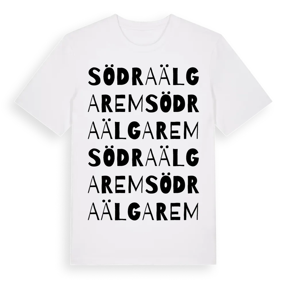 Södra Älgarem ordlek t-shirt är inspirerad av byn Södra Älgarem i Jönköpings län, Sverige. Tröjan är designad för dig som har en speciell koppling till platsen – oavsett om du bor här, har rötterna här eller bara älskar Södra Älgarem.