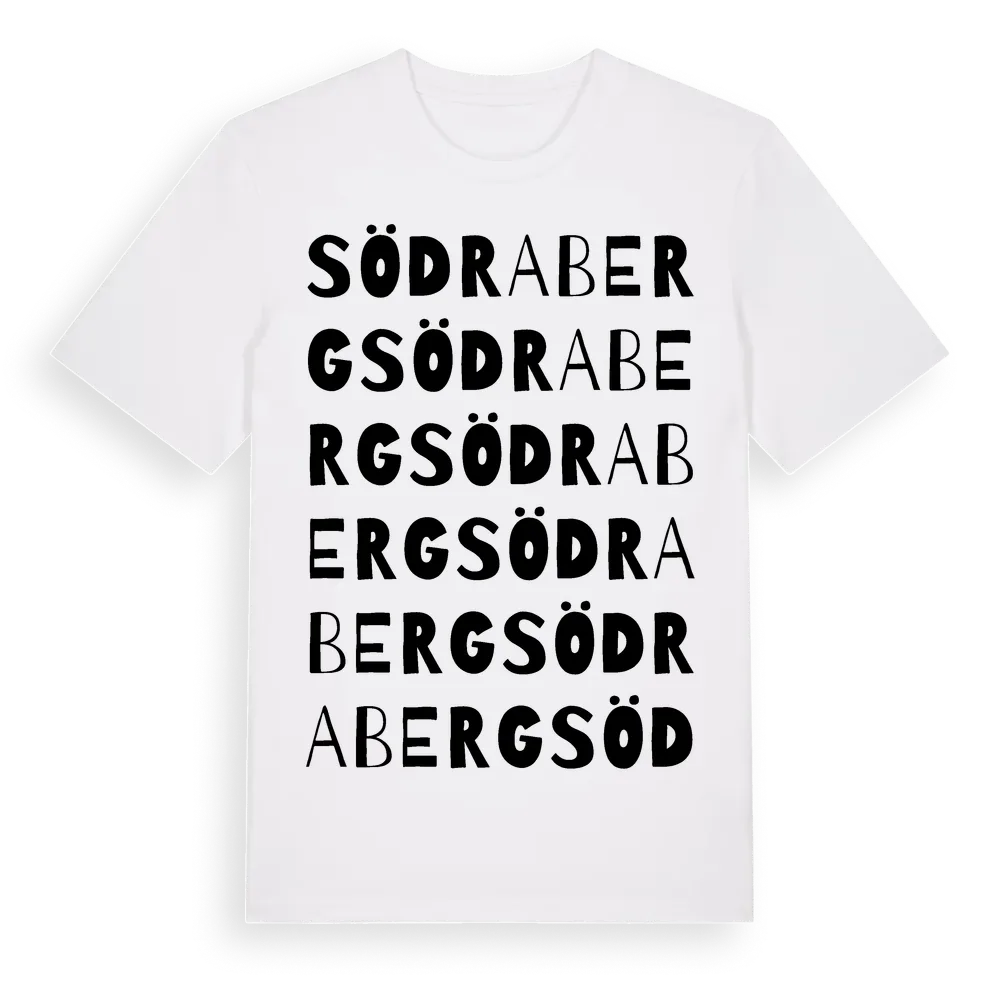 Södra Berg ordlek t-shirt är inspirerad av Södra Berg i Jönköpings län, Sverige. Tröjan är designad för dig som har en speciell koppling till platsen – oavsett om du bor här, har rötterna här eller bara älskar Södra Berg.