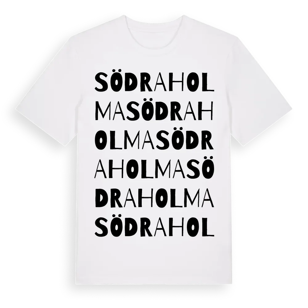 Södra Holma ordlek t-shirt är inspirerad av Södra Holma i Jönköpings län, Sverige. Tröjan är designad för dig som har en speciell koppling till platsen – oavsett om du bor här, har rötterna här eller bara älskar Södra Holma.