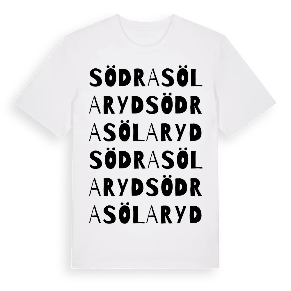 Södra Sölaryd ordlek t-shirt är inspirerad av byn Södra Sölaryd i Jönköpings län, Sverige. Tröjan är designad för dig som har en speciell koppling till platsen – oavsett om du bor här, har rötterna här eller bara älskar Södra Sölaryd.