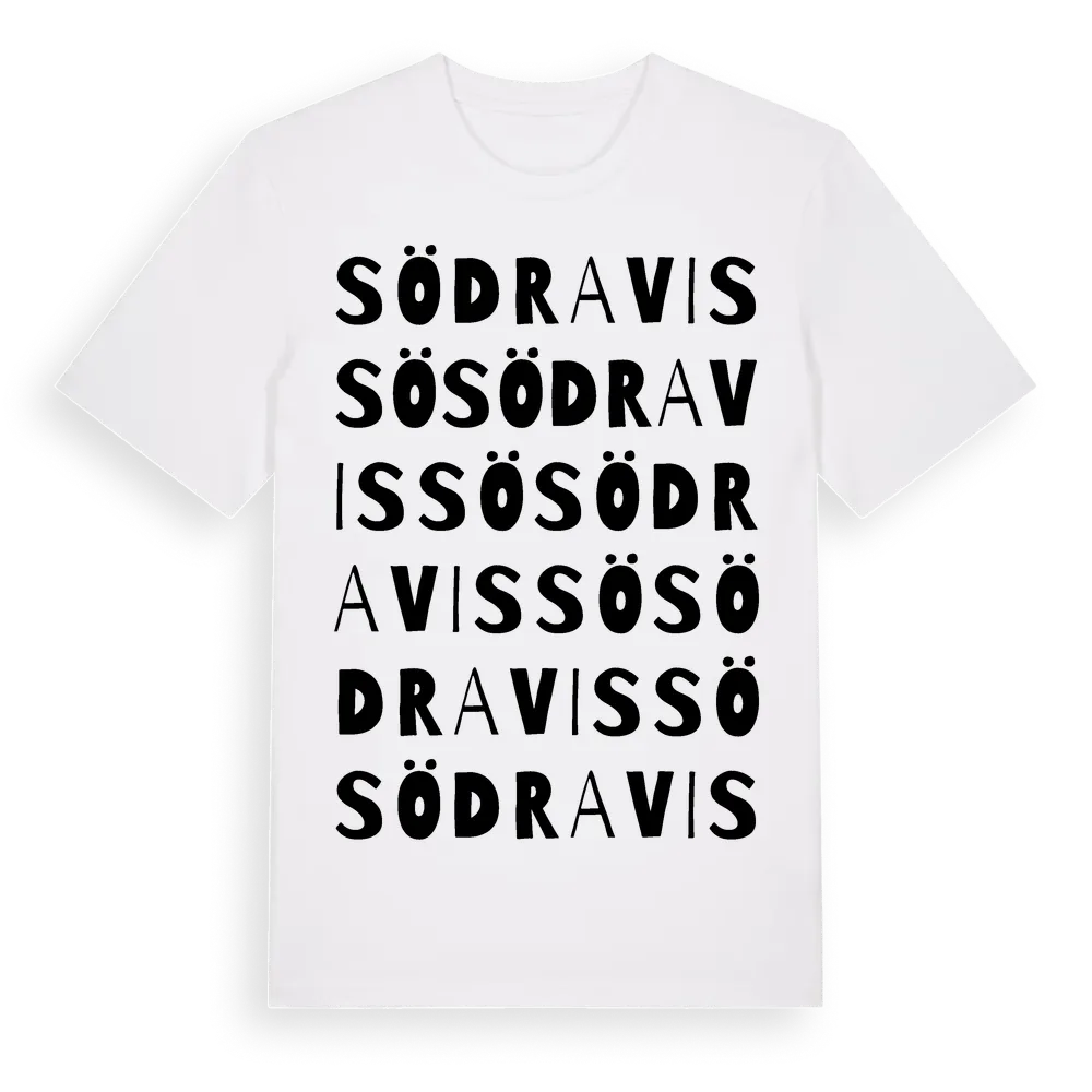 Södra Vissö ordlek t-shirt är inspirerad av byn Södra Vissö i Jönköpings län, Sverige. Tröjan är designad för dig som har en speciell koppling till platsen – oavsett om du bor här, har rötterna här eller bara älskar Södra Vissö.