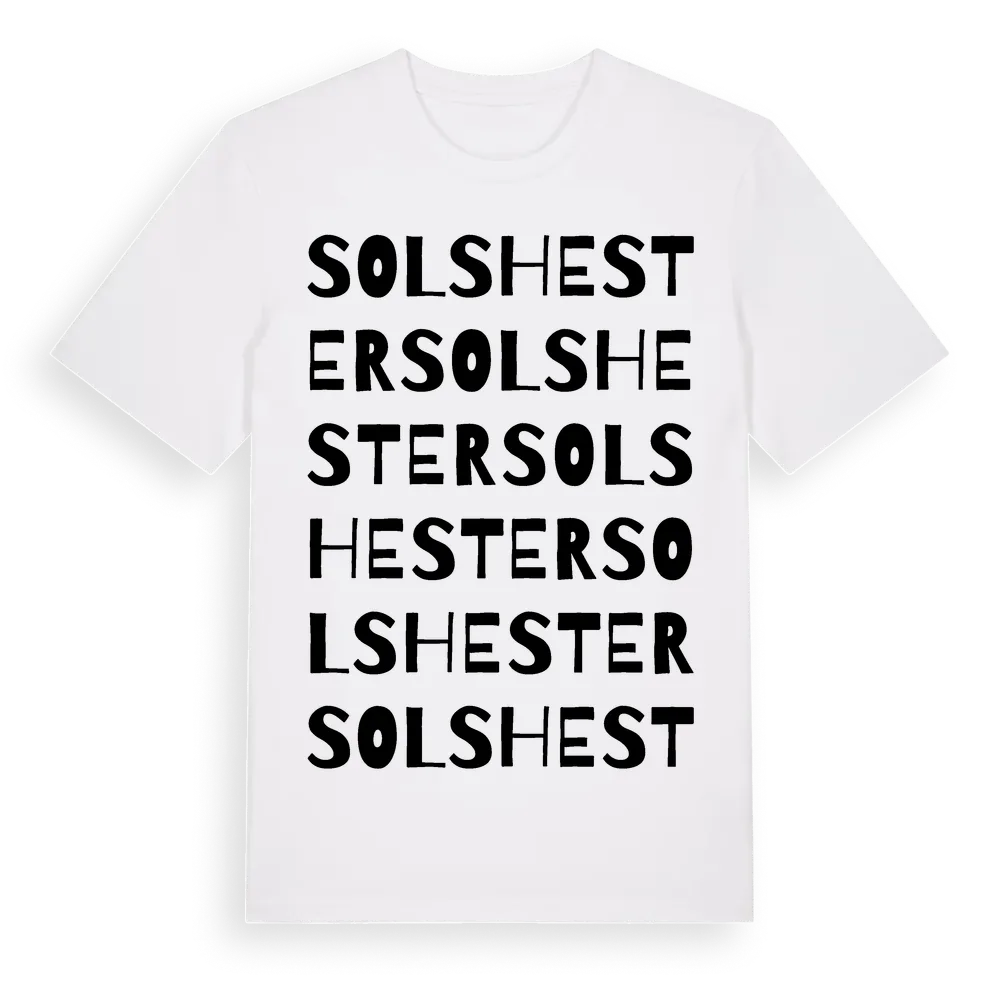 Solshester ordlek t-shirt är inspirerad av byn Solshester i Jönköpings län, Sverige. Tröjan är designad för dig som har en speciell koppling till platsen – oavsett om du bor här, har rötterna här eller bara älskar Solshester.