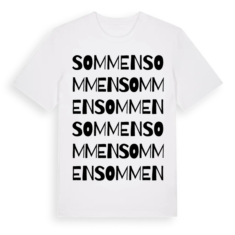 Sommen ordlek t-shirt är inspirerad av byn Sommen i Jönköpings län, Sverige. Tröjan är designad för dig som har en speciell koppling till platsen – oavsett om du bor här, har rötterna här eller bara älskar Sommen.