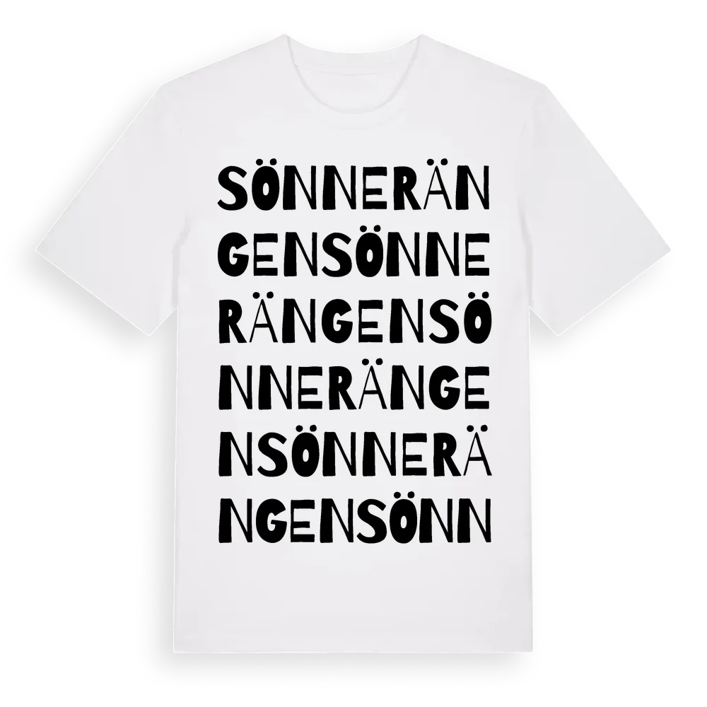 Sönnerängen ordlek t-shirt är inspirerad av Sönnerängen i Jönköpings län, Sverige. Tröjan är designad för dig som har en speciell koppling till platsen – oavsett om du bor här, har rötterna här eller bara älskar Sönnerängen.