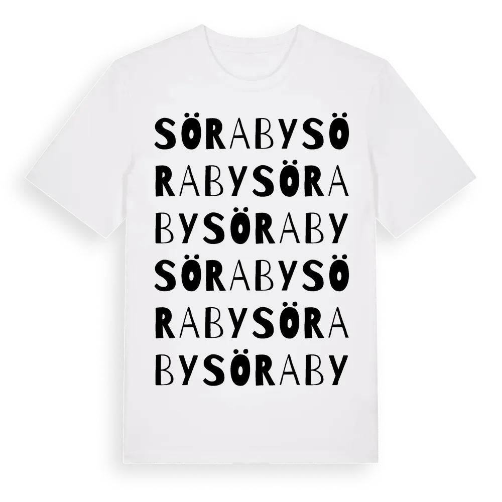 Söraby ordlek t-shirt är inspirerad av byn Söraby i Jönköpings län, Sverige. Tröjan är designad för dig som har en speciell koppling till platsen – oavsett om du bor här, har rötterna här eller bara älskar Söraby.