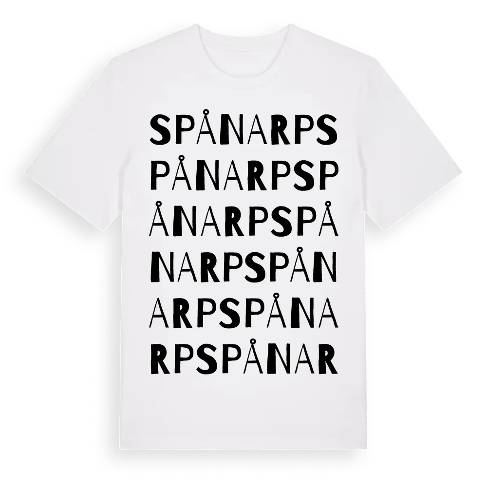Spånarp ordlek t-shirt är inspirerad av Spånarp i Jönköpings län, Sverige. Tröjan är designad för dig som har en speciell koppling till platsen – oavsett om du bor här, har rötterna här eller bara älskar Spånarp.