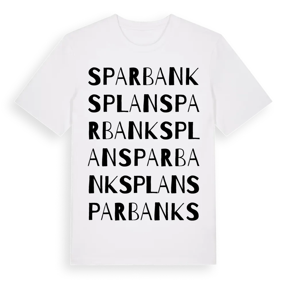 Sparbanksplan ordlek t-shirt är inspirerad av Sparbanksplan i Jönköpings län, Sverige. Tröjan är designad för dig som har en speciell koppling till platsen – oavsett om du bor här, har rötterna här eller bara älskar Sparbanksplan.