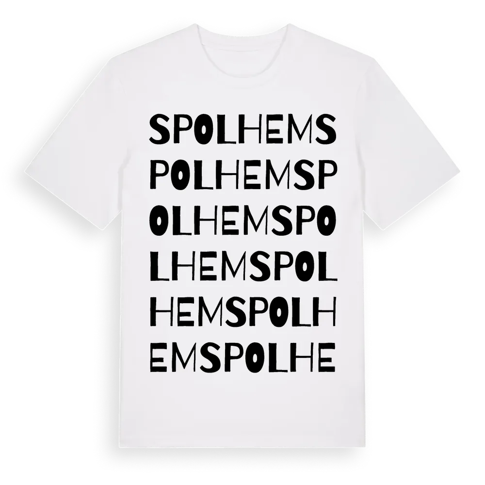 Spolhem ordlek t-shirt är inspirerad av Spolhem i Jönköpings län, Sverige. Tröjan är designad för dig som har en speciell koppling till platsen – oavsett om du bor här, har rötterna här eller bara älskar Spolhem.