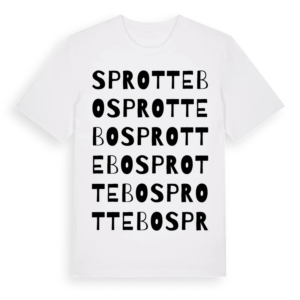 Sprottebo ordlek t-shirt är inspirerad av byn Sprottebo i Jönköpings län, Sverige. Tröjan är designad för dig som har en speciell koppling till platsen – oavsett om du bor här, har rötterna här eller bara älskar Sprottebo.