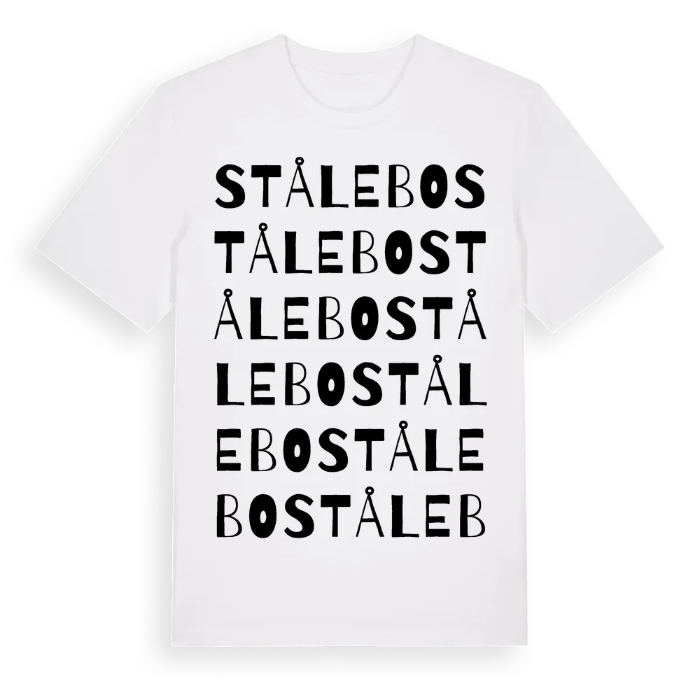 Stålebo ordlek t-shirt är inspirerad av byn Stålebo i Jönköpings län, Sverige. Tröjan är designad för dig som har en speciell koppling till platsen – oavsett om du bor här, har rötterna här eller bara älskar Stålebo.