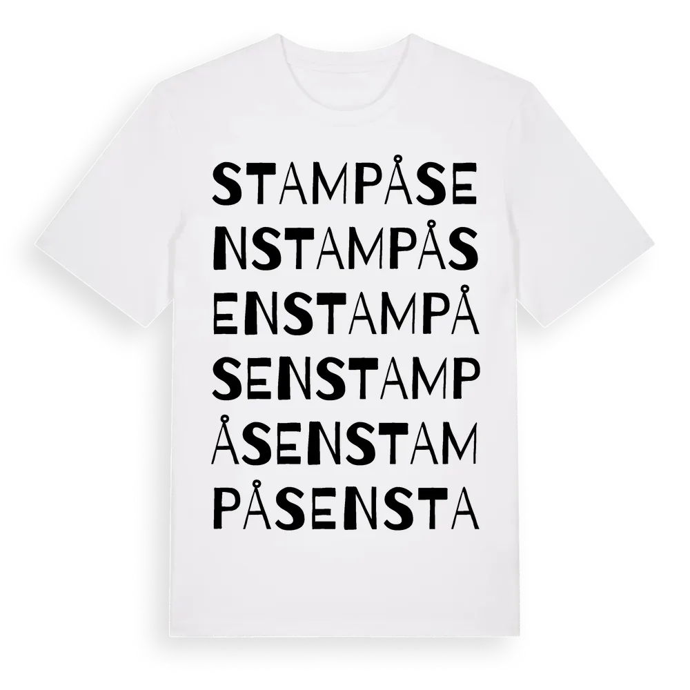 Stampåsen ordlek t-shirt är inspirerad av Stampåsen i Jönköpings län, Sverige. Tröjan är designad för dig som har en speciell koppling till platsen – oavsett om du bor här, har rötterna här eller bara älskar Stampåsen.