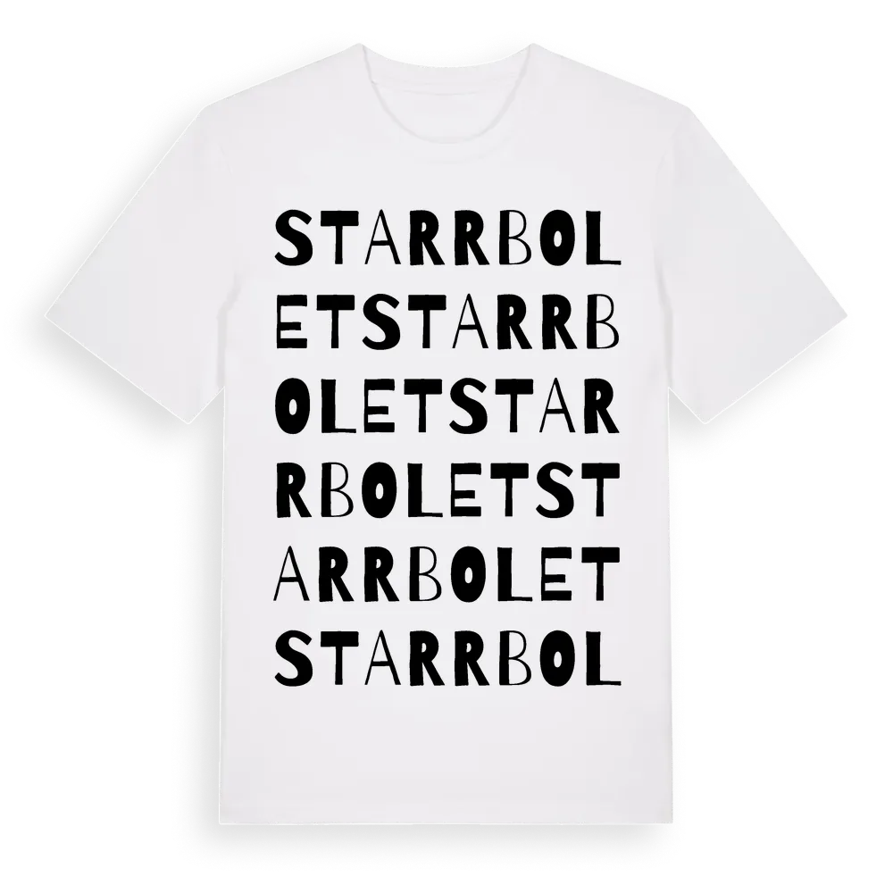 Starrbolet ordlek t-shirt är inspirerad av Starrbolet i Jönköpings län, Sverige. Tröjan är designad för dig som har en speciell koppling till platsen – oavsett om du bor här, har rötterna här eller bara älskar Starrbolet.