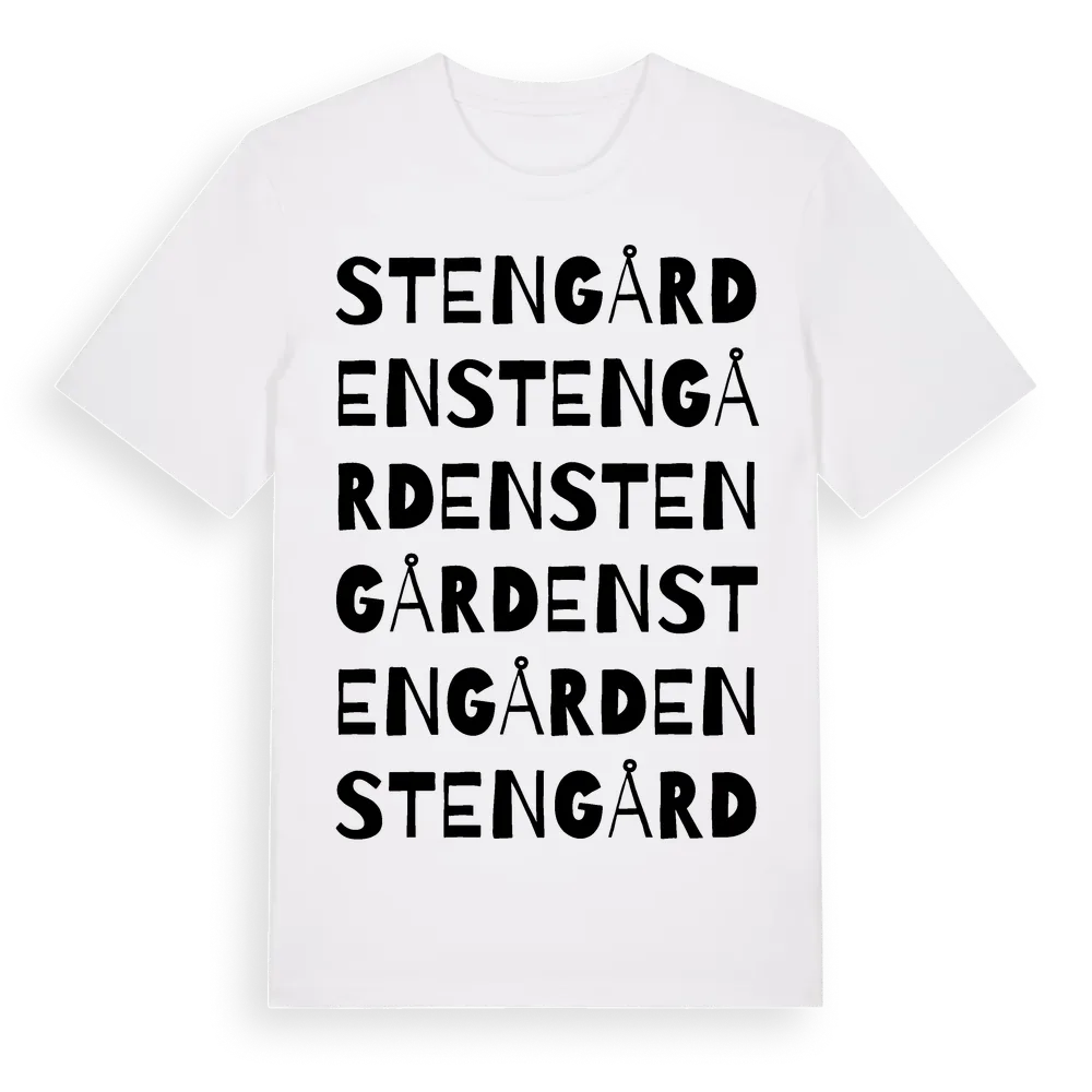 Stengården ordlek t-shirt är inspirerad av Stengården i Jönköpings län, Sverige. Tröjan är designad för dig som har en speciell koppling till platsen – oavsett om du bor här, har rötterna här eller bara älskar Stengården.