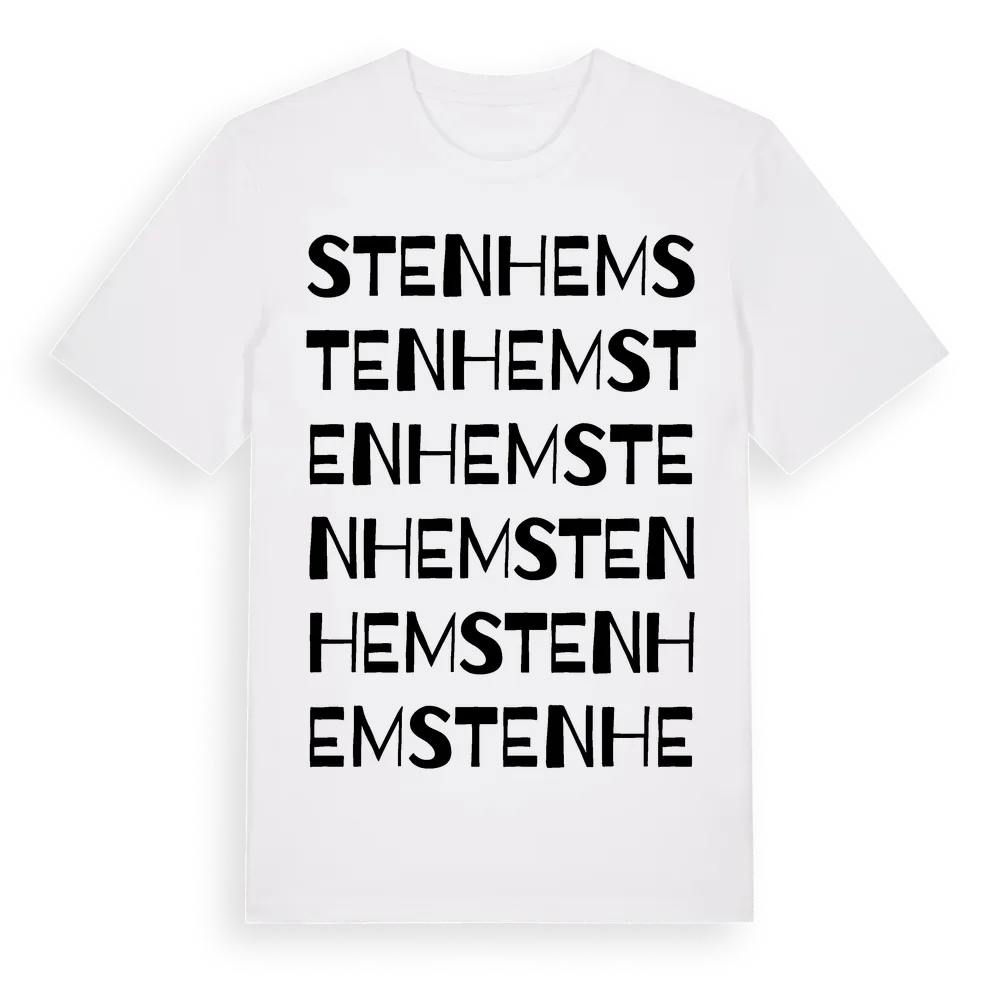 Stenhem ordlek t-shirt är inspirerad av Stenhem i Jönköpings län, Sverige. Tröjan är designad för dig som har en speciell koppling till platsen – oavsett om du bor här, har rötterna här eller bara älskar Stenhem.